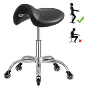 Saddle Stool with Wheels 300 lbs Weight Capacity, Heavy Duty Rolling Stool for Medical Massage Salon Kitchen Spa Drafting Nail-Tech,Height Adjustable,360 Swivel,Wide Thick Seat Padding (Premium Black)